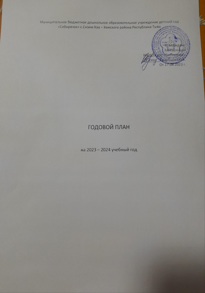Годовой план МБДОУ д/с «Сибирячок»